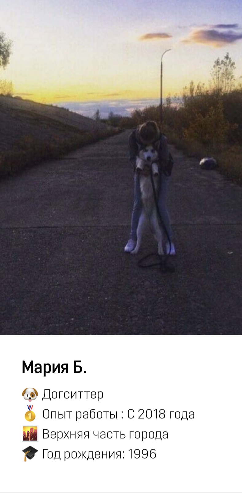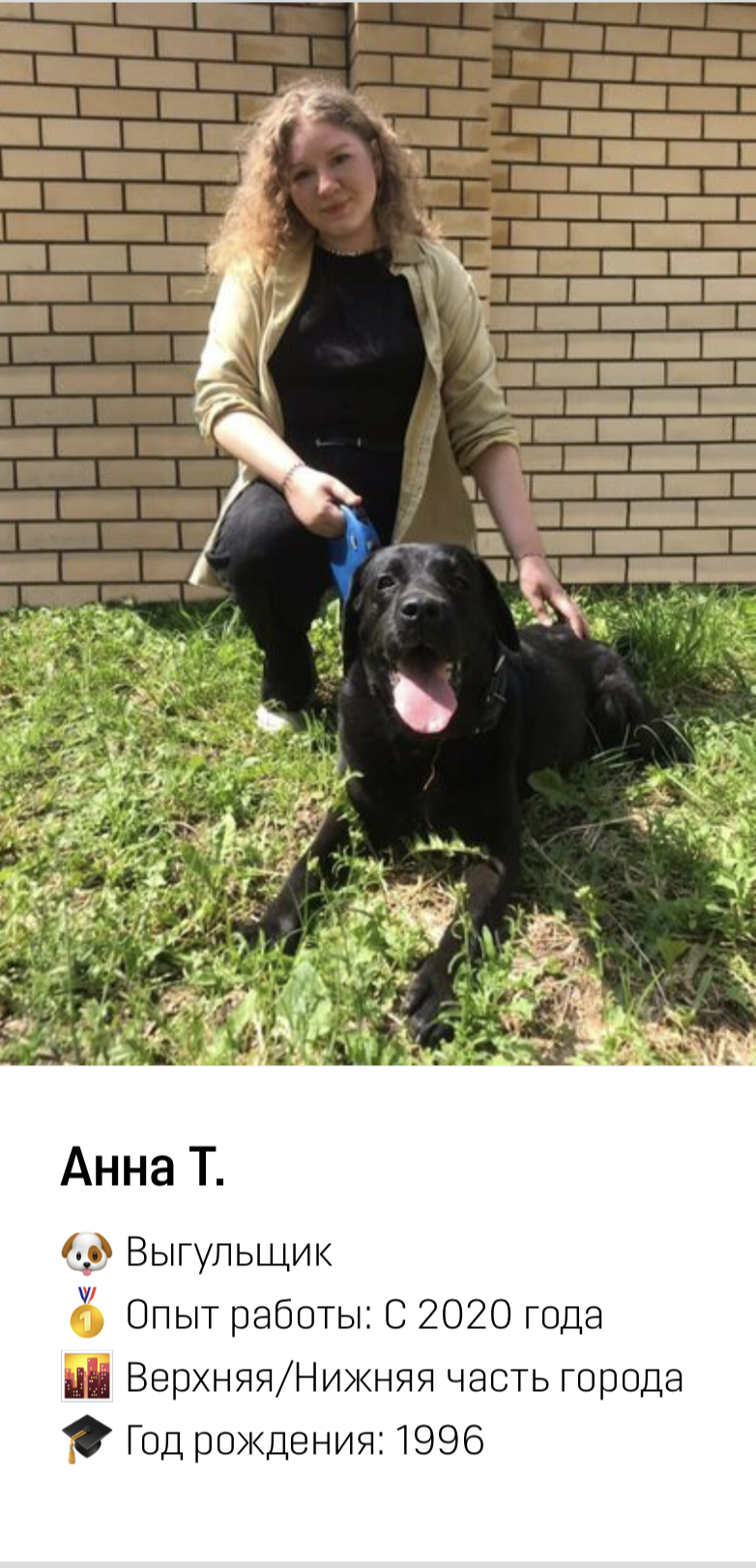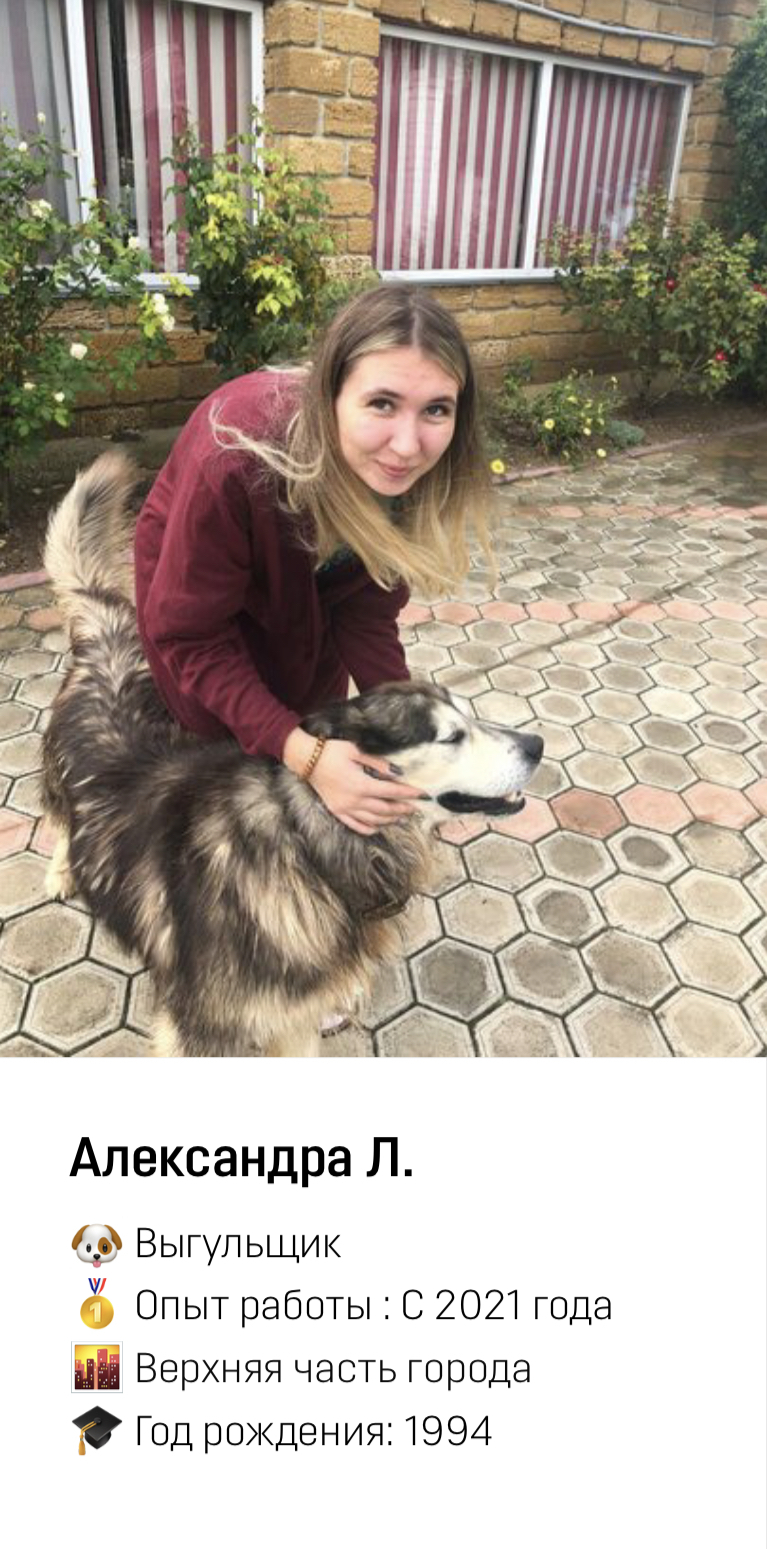 Сотрудник приезжает к вам домой и заботится о вашем питомце (гуляет, играет с ним). Происходит всё тоже самое, что и на передержке, но уже на вашей территории.