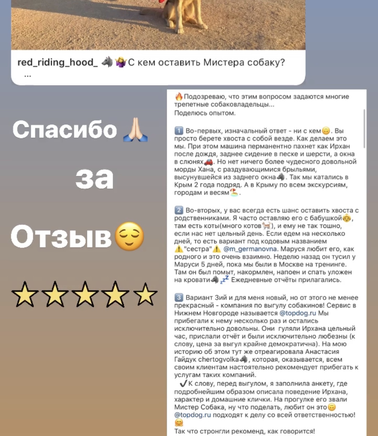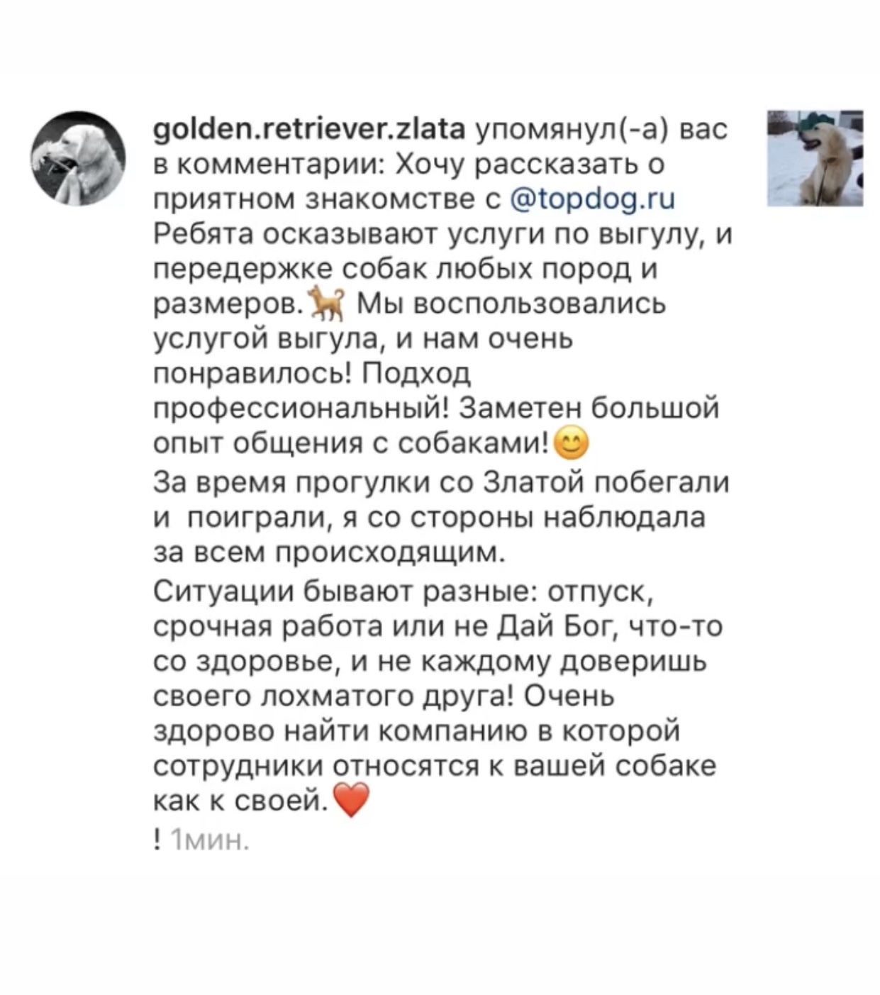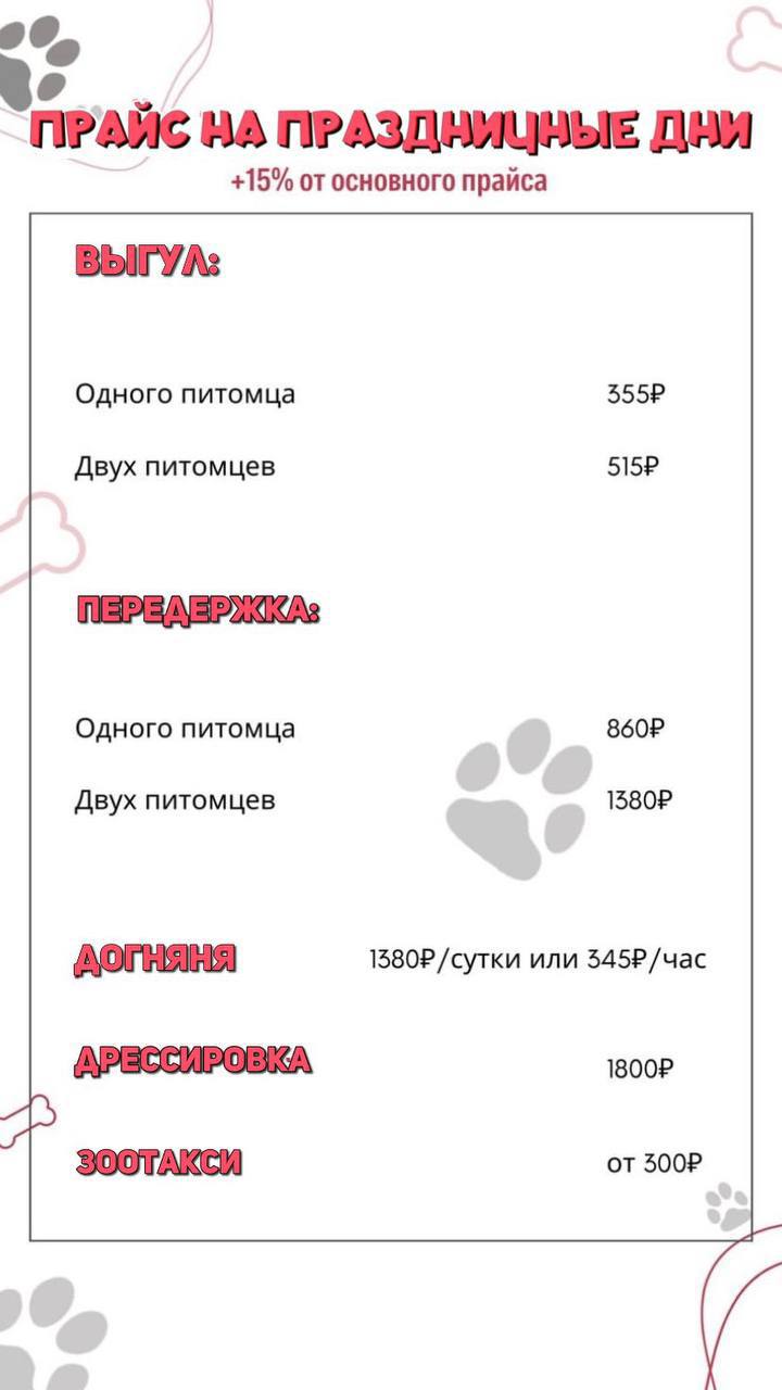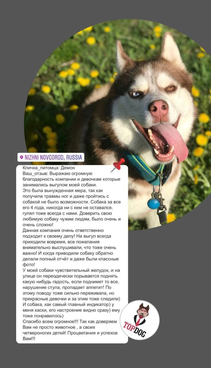 После прогулки присылаем фото - видеоотчет и рассказываем как прошла прогулка.