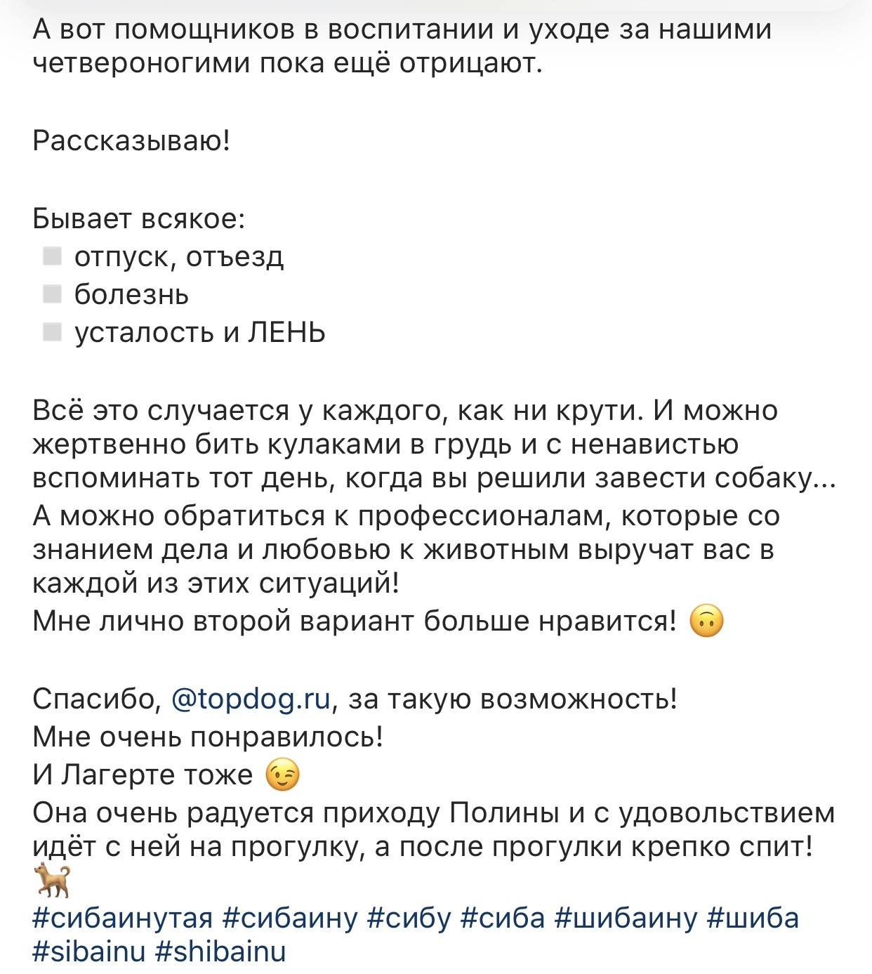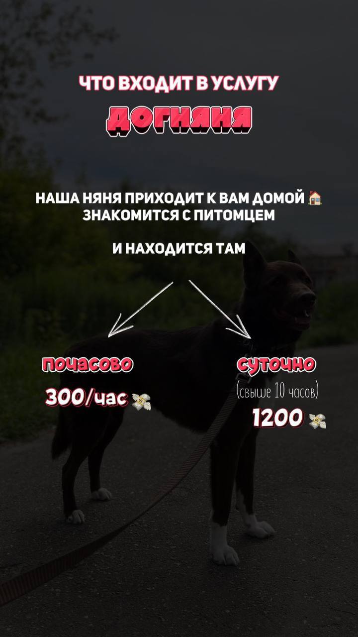 В каких случаях нужны услуги догняни? - Собака плохо переносит одиночество: лает, воет, грызёт мебель; - Собака заболела, ей нужен уход, например, следить за капельницей или давать лекарства; - Собаке просто нужно внимание, особенно это относится к щенкам.