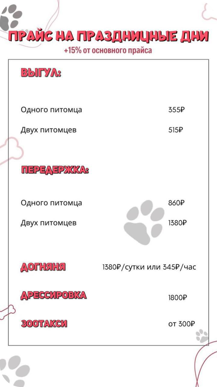 После прогулки присылаем фото - видеоотчет и рассказываем как прошла прогулка.